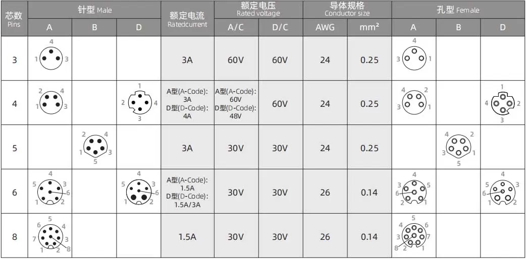 | एम8 मेल फ्रंट माउंट सॉकेट-6ए पिन | M8x0.5 | पीसीबी | 6ए | एम8-पी6ए-जीपीबी एम8 | ||