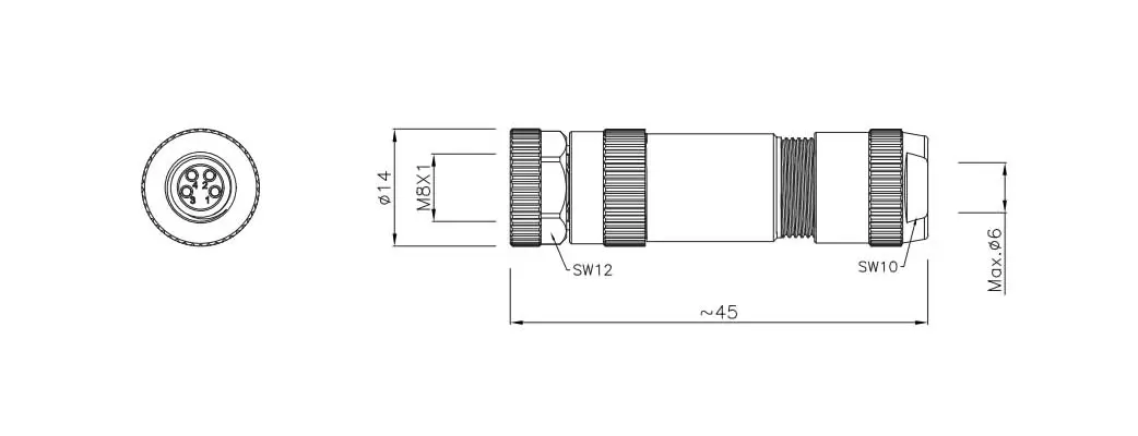 यूरोपीय मानक कनेक्टर्स एम8 सीरीज संरचना प्रकार: मेटल असेंबल किया हुआ सीधा प्लग पिन प्रकार: महिला प्रकार संपर्क संख्या: 3, 4 पिन, कनेक्शन विधि: स्क्रू शील्ड: हां प्रमाणन: सीई, आरओएचएस, यूएल, मानक: आईईसी 61076-2-104